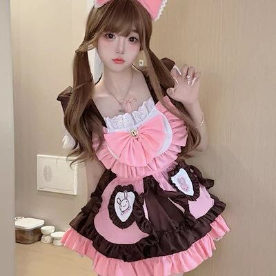 うさぎちゃんロリータメイドコスプレゲーム ハロウィン コスプレ メイド服 かわいい コスプレエプロン メイド服/仮装 洋服
