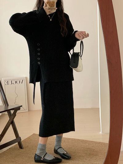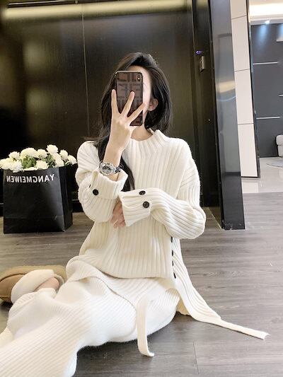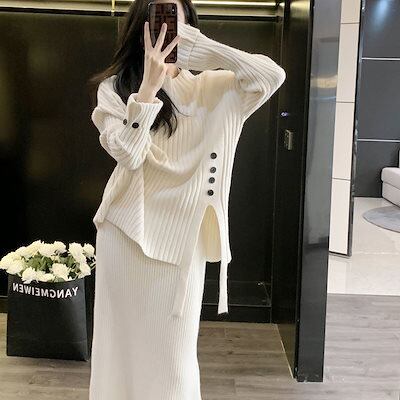 秋冬の新作 ドレス 軽やかな大人 ニット+スカート セットアップ けだるさ風 2点セット レディースファッション