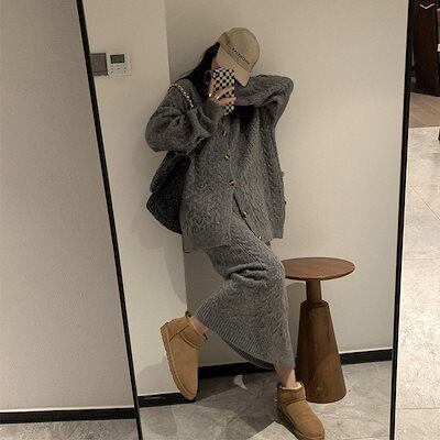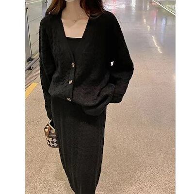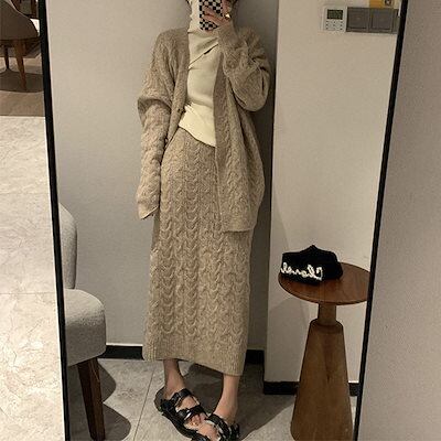 秋冬の新作 ドレス ニットレトロスーツ カジュアル セーター+スカート セットアップ 2点セット レディースファッション