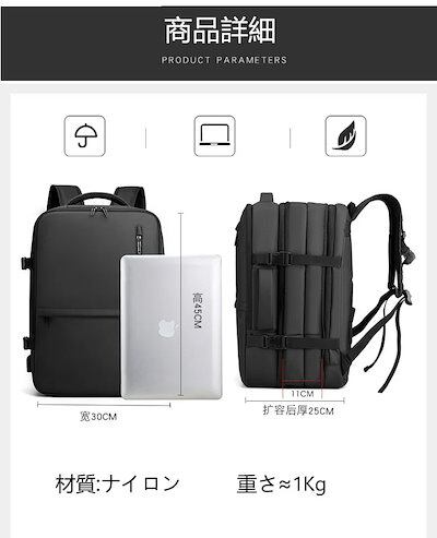 出張旅行用防水ビジネスコミューティング 多機能USB充電パソコン用バックパック2Wayバック可拡大大容量リュック