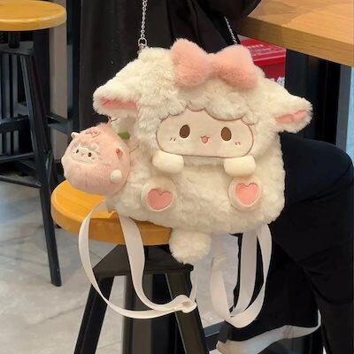 リュック 韓国 学生バッグ大容量 バッグ 通学 漫画バッグ子羊バックパックぬいぐるみバッグかわいい女の子大学 Jk 多目的バックパックのスクールバッグ