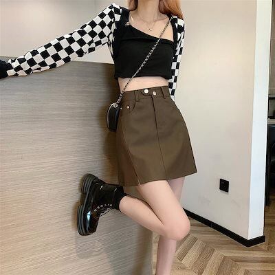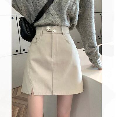 プリーツスカート 脚魅せミニスカート ショートスカート ミニスカート ニッチデザイン ハイウエスト スリット スリミング 美脚 個性 PUスカート おしゃれ 着痩せ 百掛け シンプル タイトスカート