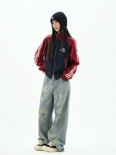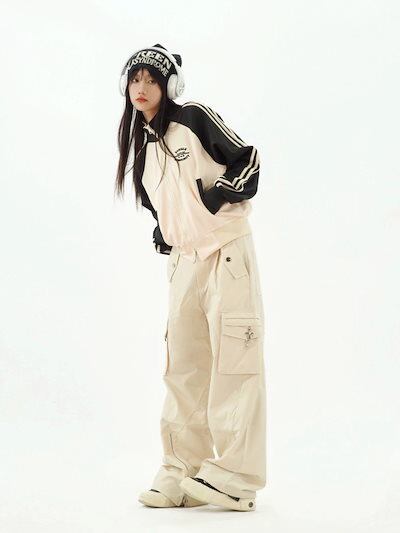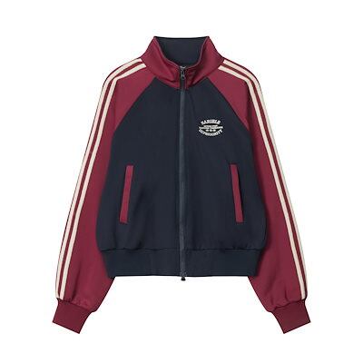 2025春夏 韓国 かわいい バイカラー レディースショートハイネックスタンドネックアウターストリートブルゾン長袖 シルエットトップスサイド冬カジュアルファッション系サイズお出かけフルトラック