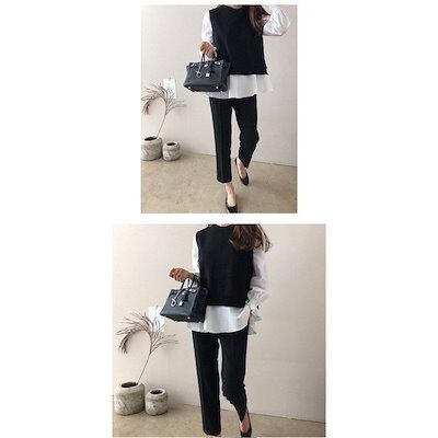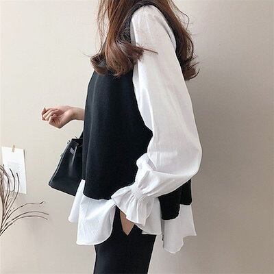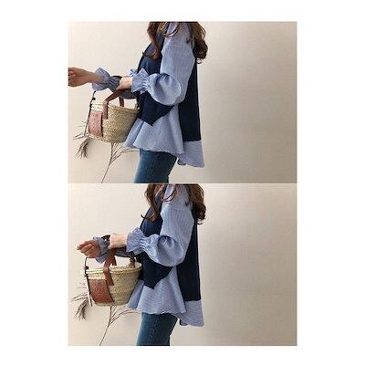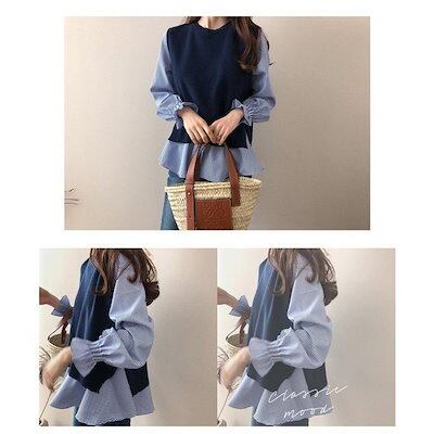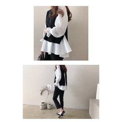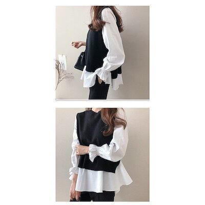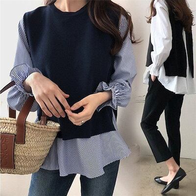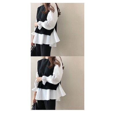 ブラウス 長袖 レディース 秋冬 ニットベスト セットアップ ボーダー柄 ベスト 秋 冬 オシャレ ゆったり カジュアル トップス 通勤 上品 30代 50代