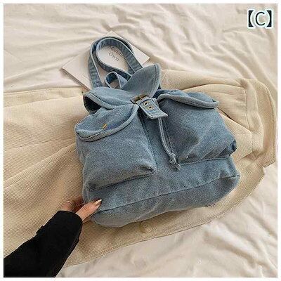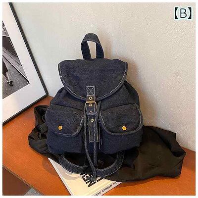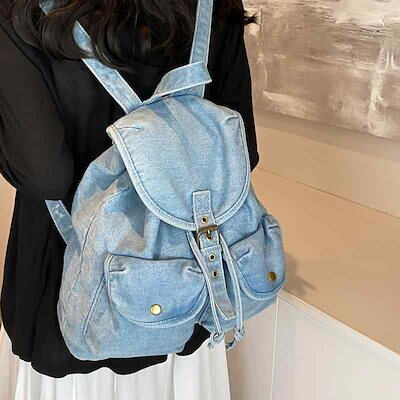人気新作 リュック デニム 可愛い 大容量 リュックサック レディース 韓国系 かぶせ ポケット A4 ブルーデニム 大学生 通学 学校 スクール 黒 ブラック 紺色 ネイビー 水色 ブルー 無地 デ