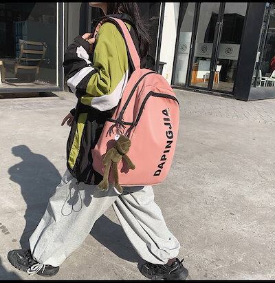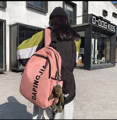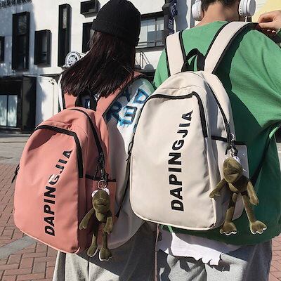 お早めに!4色 リュックサック バッグ レディース メンズ バックパック 鞄 かばん シンプル 無地 英文字 ロゴ 大容量 縦型 おしゃれ 大人可愛い 男女兼用 デイリーバッグ ポケットボーイッシュ