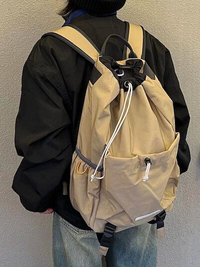 バックパック リュック 通学カバン ナイロン ドローストリング 多機能 大容量 百掛け ポケット 韓国ファッション ショルダーバッグ