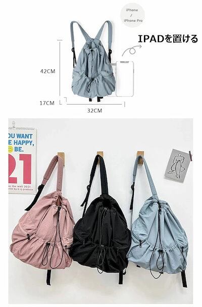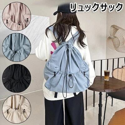 リュック 縄を引く付き 大容量 ショルダーバッグ レディース ナイロン ドローストリング かわいい 軽量 通勤 通学 ジップ ポケットいっぱい リュックサック バックパック 韓国人気 新学期 入学祝