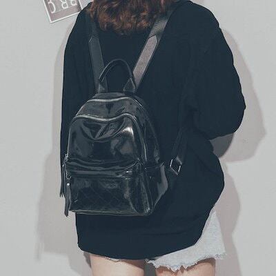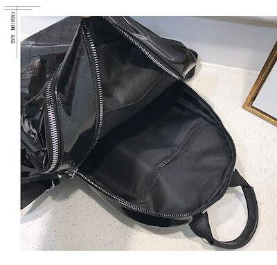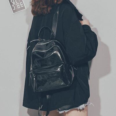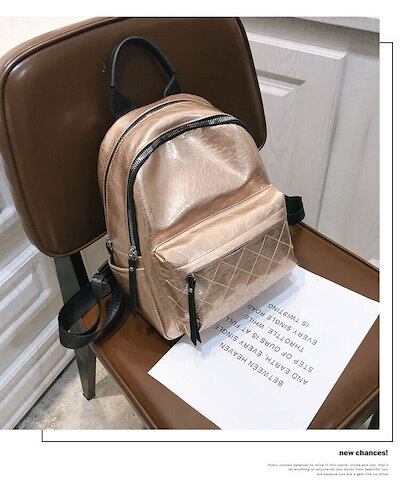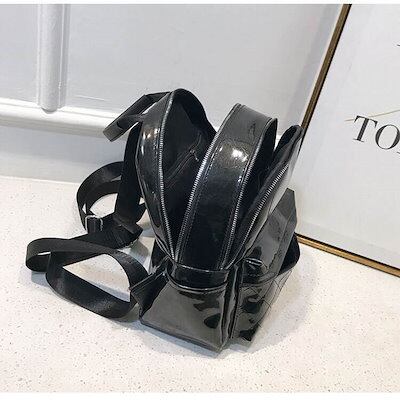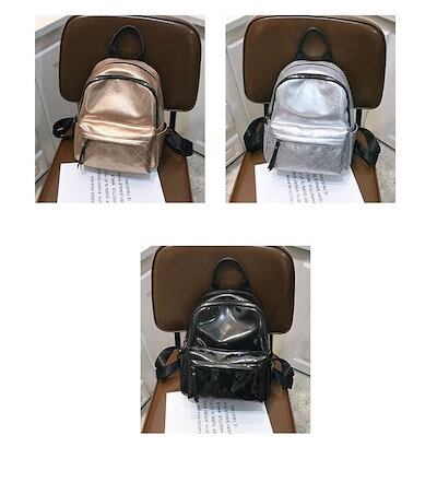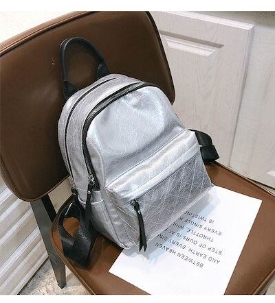 3色 リュックサック ミニ リュック バックパック 小さい 金 銀 黒 無地 カジュアル レトロ ジッパー ファスナー ポケット 光沢 ブラック シルバー ゴールド レディース 大人女子 かわいい カ
