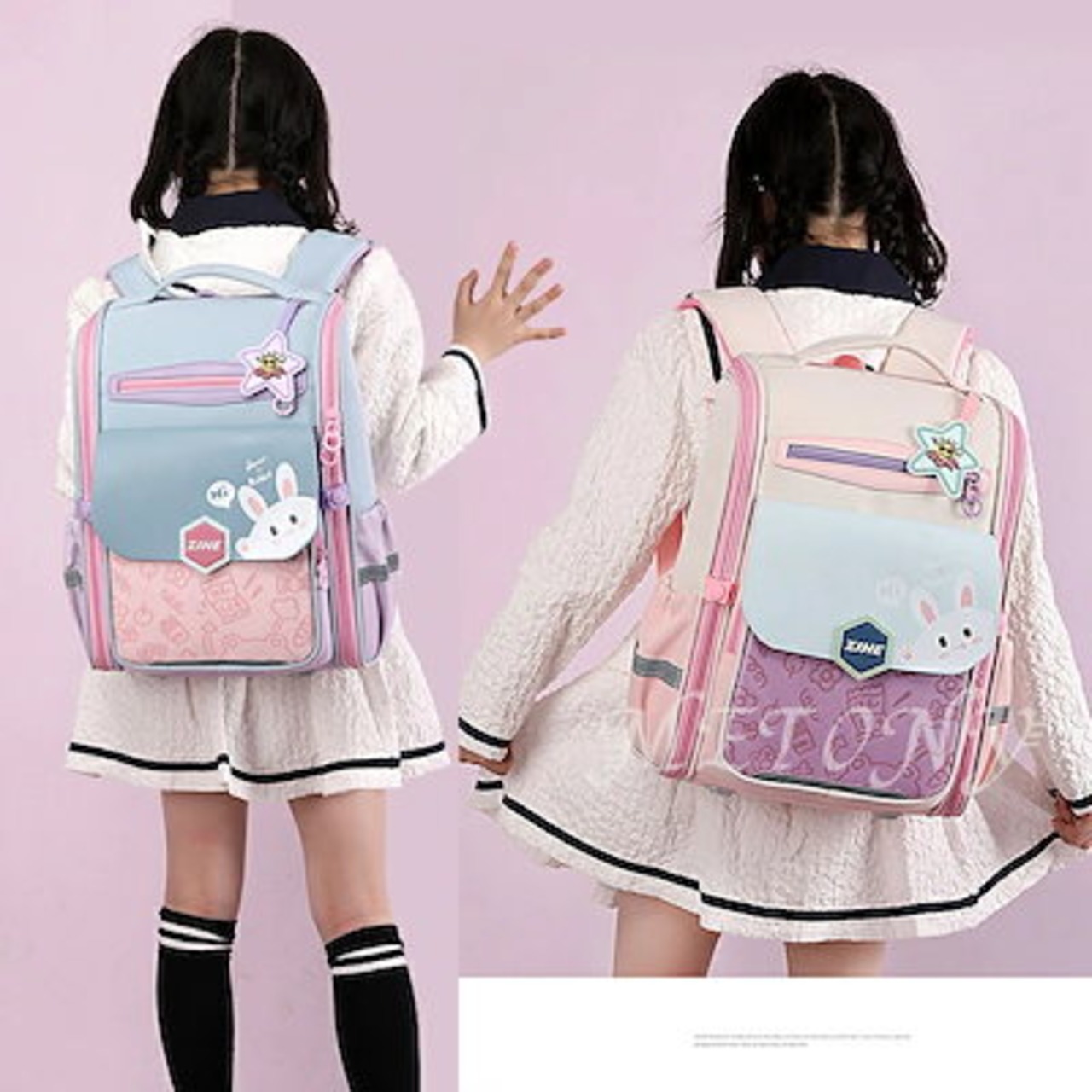 今月の販促子供 バックバッグ 軽量 ポケットいっぱい ランドセル 胸ベルト付き ウサギ 恐竜 かわいい 小学生 ジュニア ハイキング 旅行 かわいい パープル ピンク ブルー ネイビー グレー