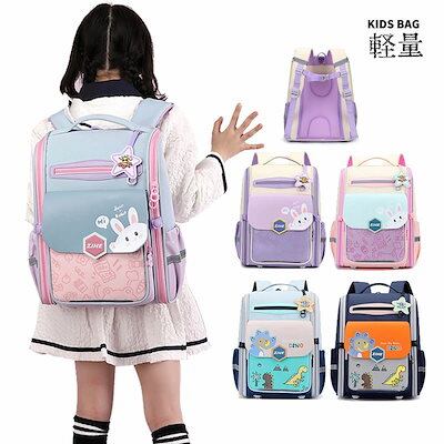 子供 バックバッグ 軽量 ポケットいっぱい ランドセル 胸ベルト付き ウサギ 恐竜 かわいい 小学生 ジュニア ハイキング 旅行 かわいい パープル ピンク ブルー ネイビー グレー