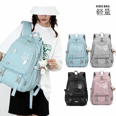 子供 バックバッグ 軽量 ポケットいっぱい ランドセル 小学生 ジュニア ハイキング 旅行 かわいい グレー ブラック パープル ピンク ライトブルー 熊さん キーホルダー無し