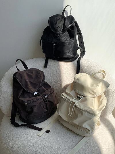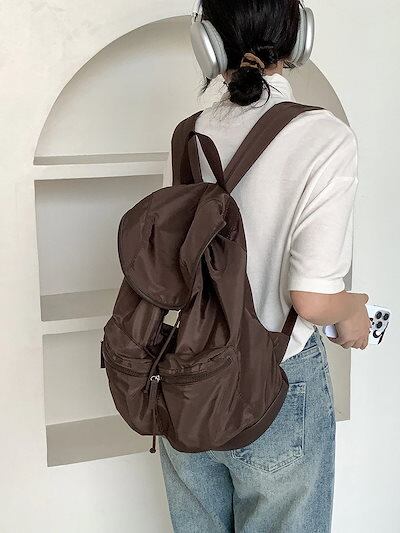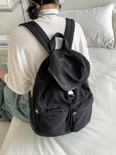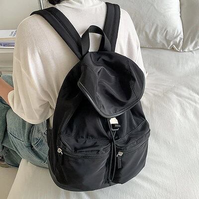 メガ割 リュックブラックスポーツスタイルシンプルナイロンバックパックレディースファッション防水マルチポケット旅行バックパック