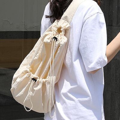 【メガ割 】ワンショルダーバッグ レディース 鞄 斜め掛けバッグ 使いやすい ボディバッグ 巾着型 軽量 黒 A4収納 23L 肩ひも 幅広 ドローストリング 広い 開口部 ポケット 出し入れしやすい