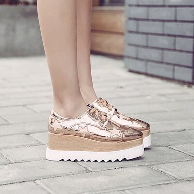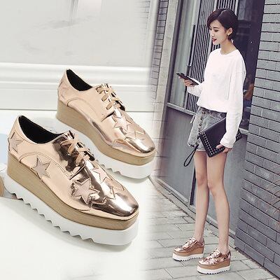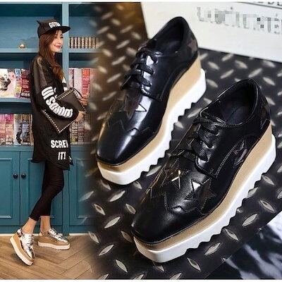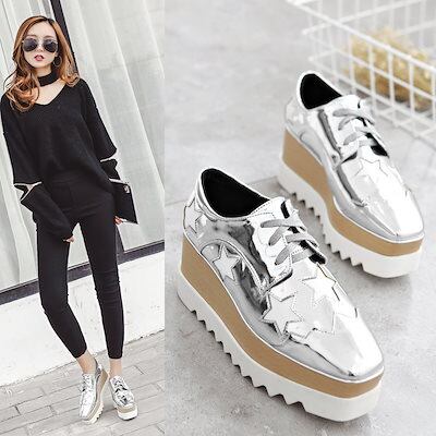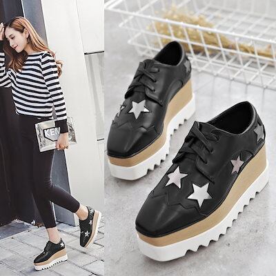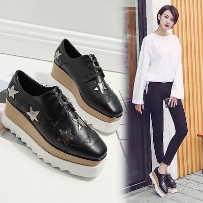 スニーカープラットフォームシューズレディースレースアップシューズ通学学生用シューズローカットローファ