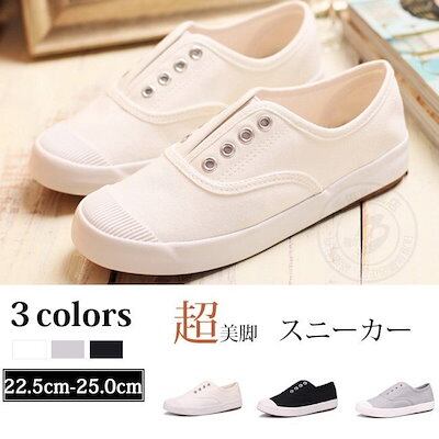 ひもなし スニーカー レディース おしゃれ キャンバス 大きいサイズ ローカット 紐なし スリッポン