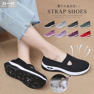 厚底 通気性 スニーカー レディース シューズ ストラップ 軽量 ニット ストレッチ フィット スリッポン ローカット 疲れにくい 軽い 屈曲 履きやすい 歩きやすい 靴