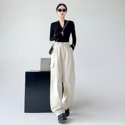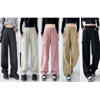 4月の新品カーゴパンツ レディース ワークパンツ ロング丈 カジュアルパンツ ロングパンツ ウエストゴム ボトムス おしゃれ ゆったり カジュアル 着痩せ 春 秋