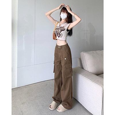 【GUANGYU】カーゴパンツ レディース ミリタリーパンツ ボトムス ロングパンツ ワイドパンツ 春 夏 秋 ハイウエスト 韓国ファッション