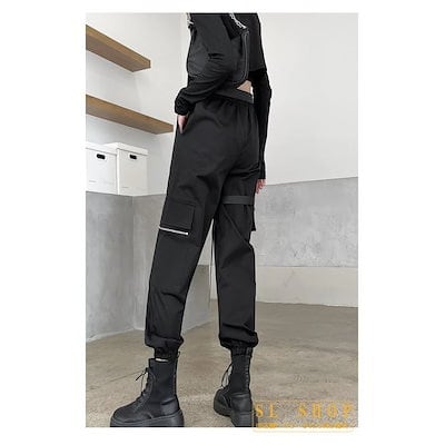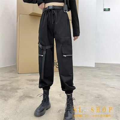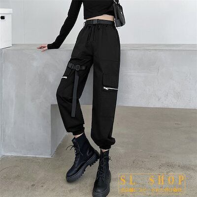 メガ割 3日で出荷カーゴパンツ レディース テーパードパンツ 黒 衣装 9分丈 ウエストゴム ボトムス かっこいい カ kanxia2418043