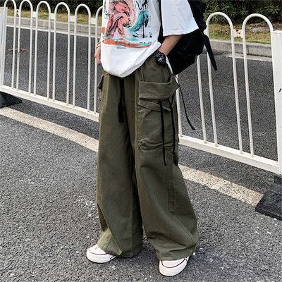 メガ割 ワイドパンツ カーゴパンツ メンズ レディース ミリタリー カーゴ コットン ガウチョパンツ 無地 ボトムス ポケット 長ズボン 大きいサイズ ウエストゴム 体型カバー 着回し アウトドア