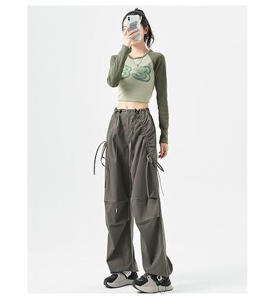 【2025初春新作】?国風 レディース カーゴパンツ パンツ ゆったり ワイドルーズズボンボトムスおしゃれ 体型カバー スウェットパンツ ワイドパンツ メガ割 2