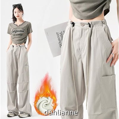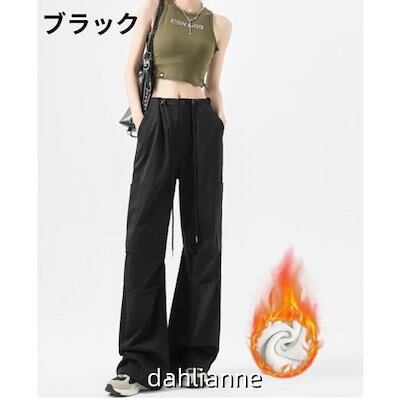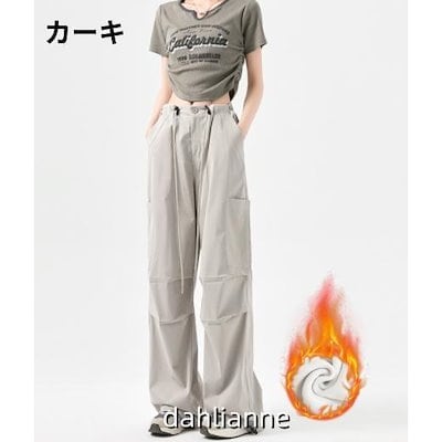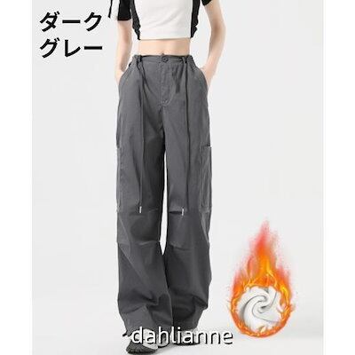 2025年新型秋 冬 カーゴパンツ レディース 裏起毛 ワークパンツ ハイウエスト ゴム紐 ボトムス カーゴ 無地 カジュアル ゆったり 着痩せ リラックス ファション 春