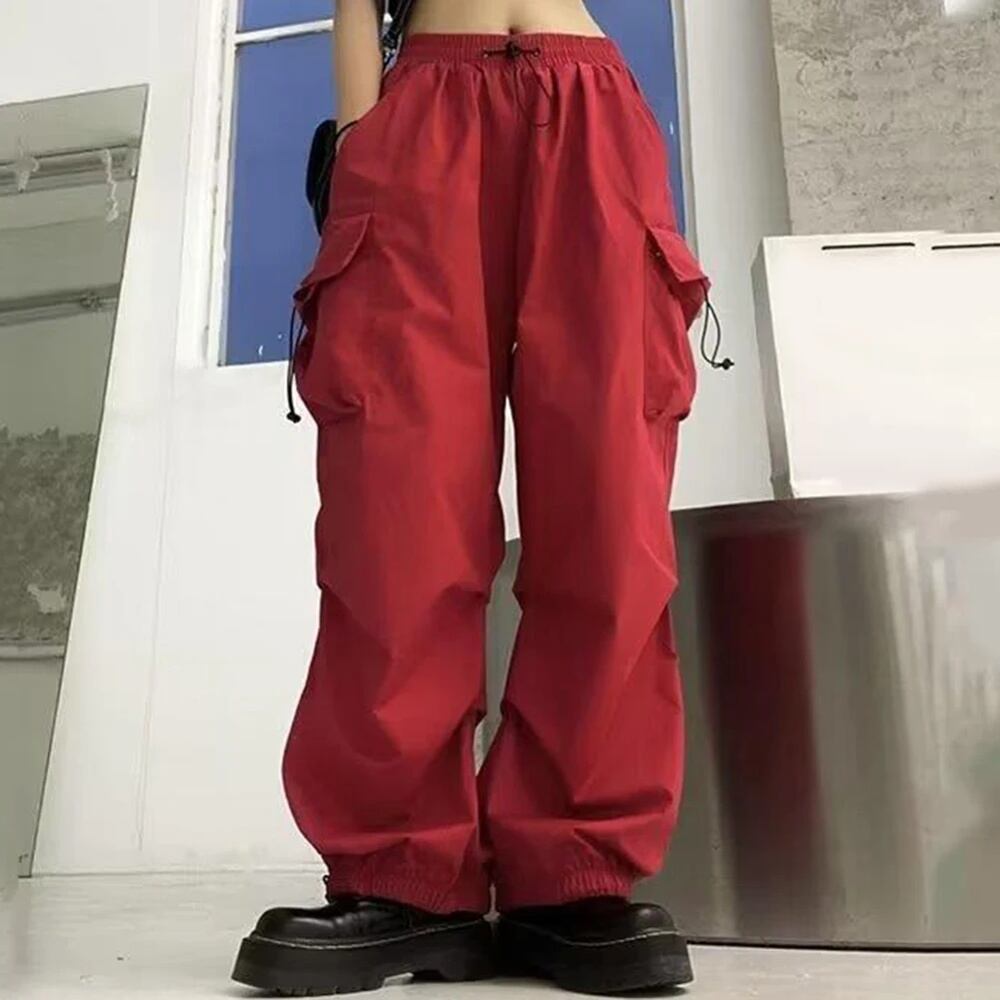 女性のヴィンテージカーゴパンツ,ルーズフィット,ストリートウェア,カジュアル,ハイウエスト,韓国原宿,レトロ,ワイドレッグ ボトム ワイドレッグ バギーパンツ T240831224055_02
