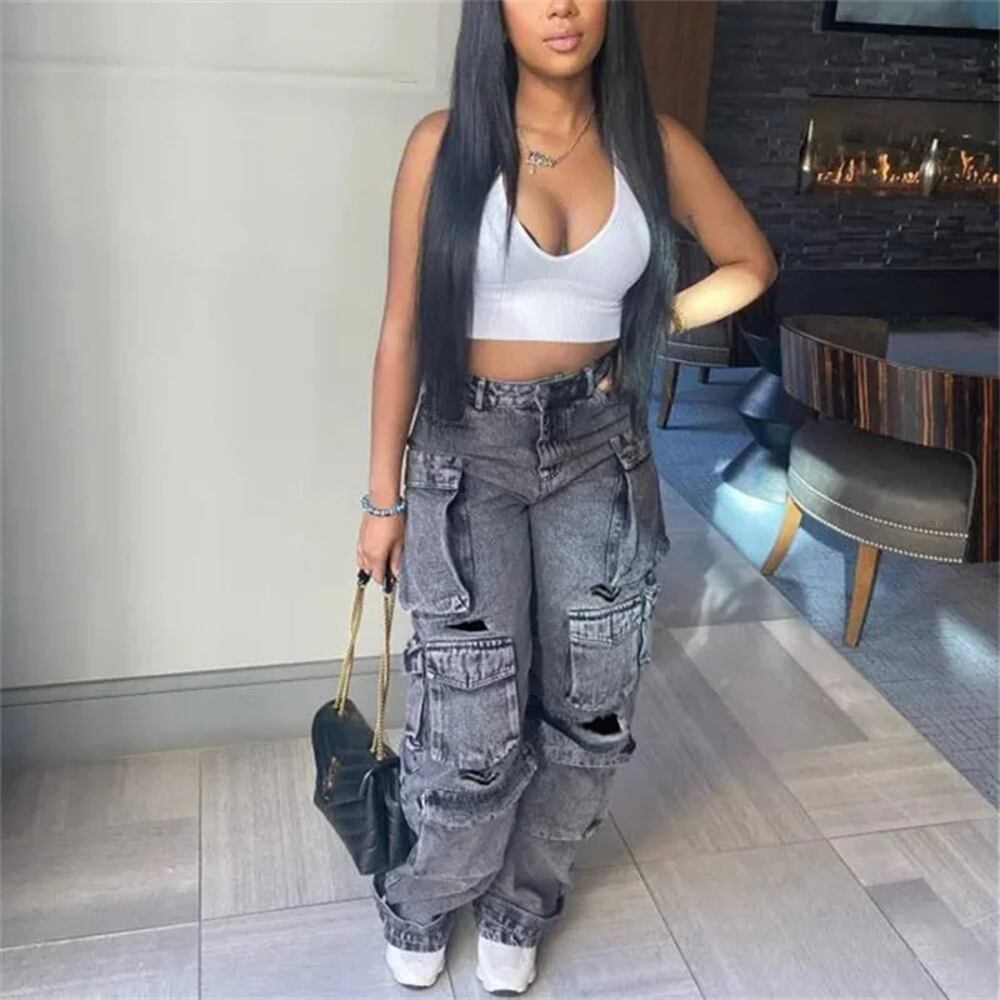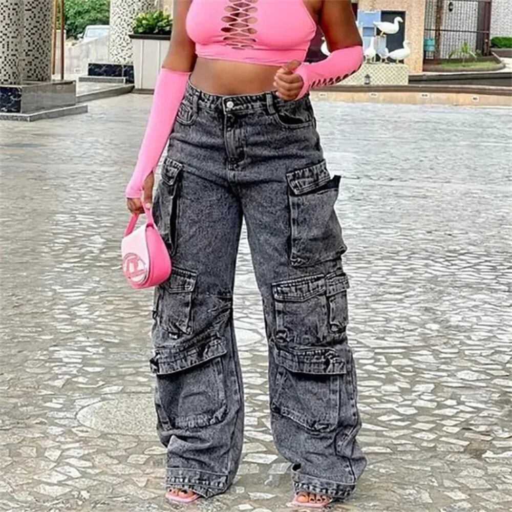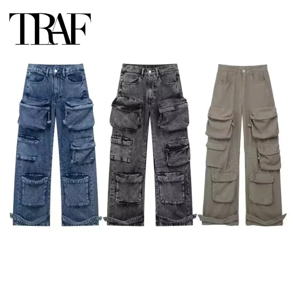 女性のためのtraf-カーゴジーンズ、ハイウエストバギーパンツ、青と黒、デニムパラシュート、y2kストリートウェア、ファッション、2024 ボトム ワイドレッグ バギーパンツ T240831225706_02