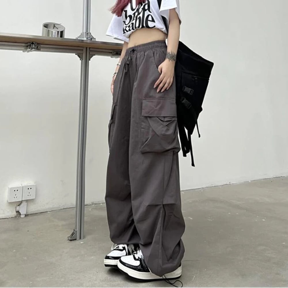 女性用単色ローウエストカーゴパンツ、カジュアルジョガー、ドローストリング、ワイドレッグバギーパンツ、y2kストリートウェア、特大スウェットパンツ ボトム ワイドレッグ バギーパンツ T240901062504_01