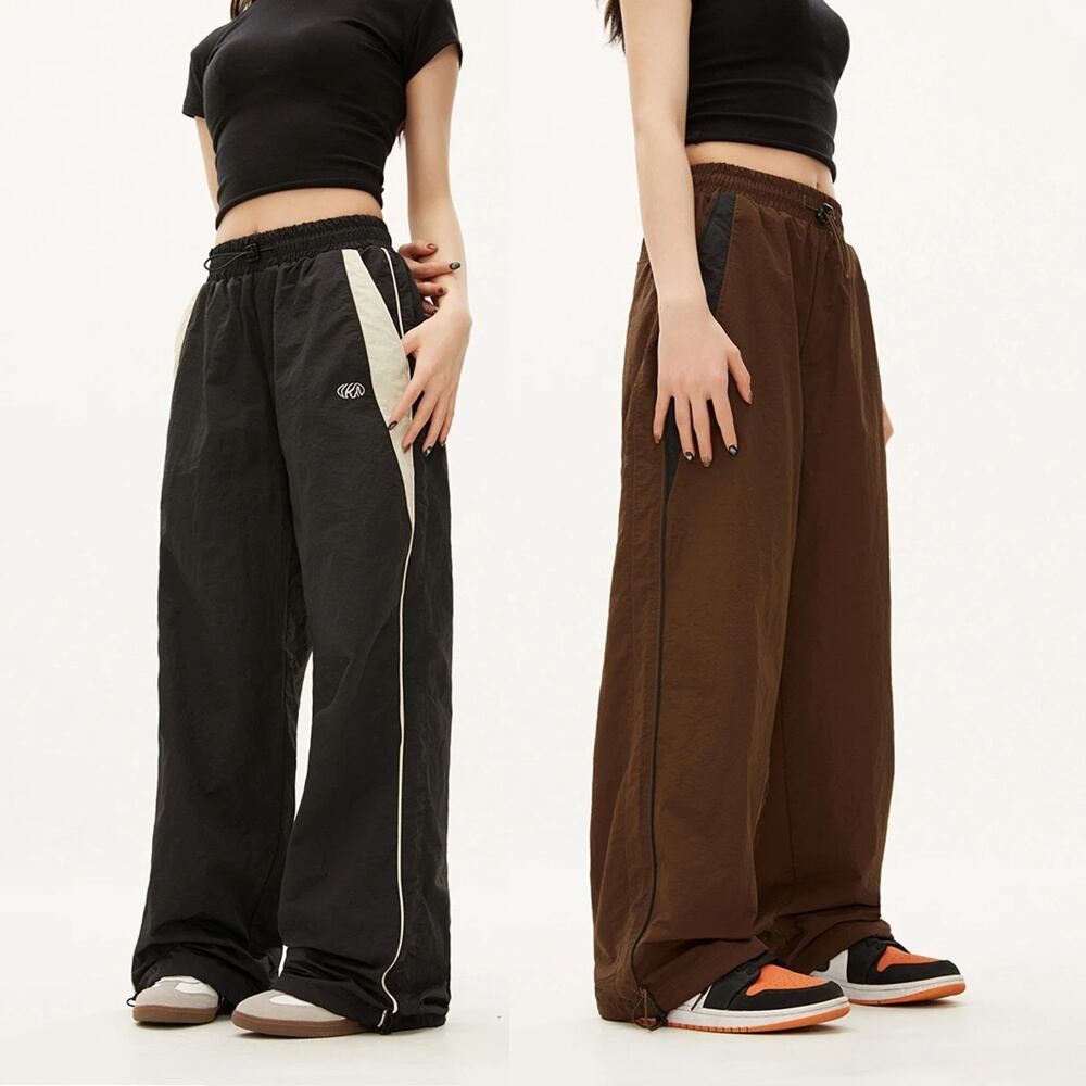 レディースカジュアルテックパンツ、ソリッドミッドウエスト巾着、ワイドレッグバギーパンツ、y2kストリートウェア、オーバーサイズスウェットパンツ、レディースジョガー、2024 ボトム ワイドレッグ バギーパンツ T240901062532_02