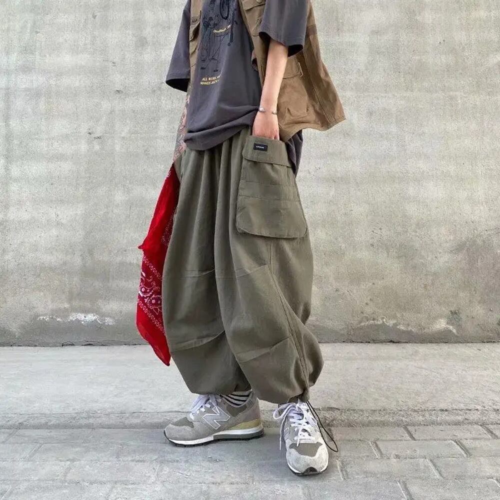 メンズバギーカーゴパンツ,足首丈,カジュアル,ハーレム,ロング,ワイドレッグ,特大ストリートウェア,原宿,y2k,新品,2024 ボトム ワイドレッグ バギーパンツ T240901062619_02