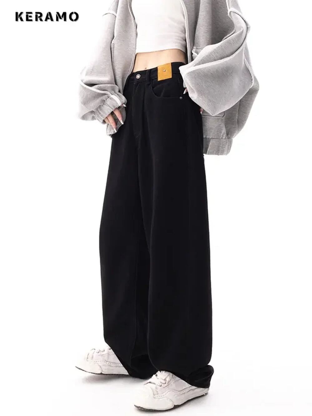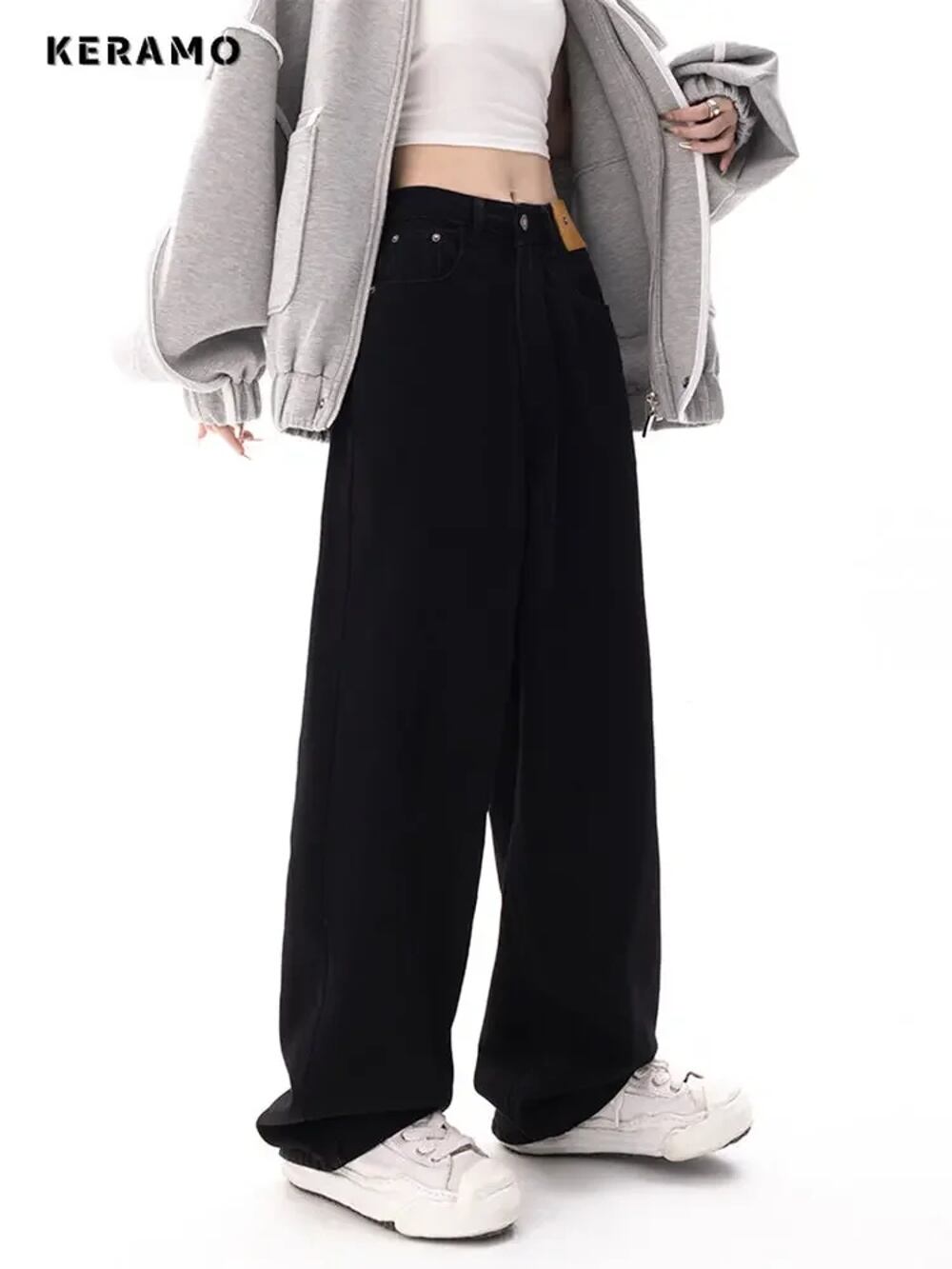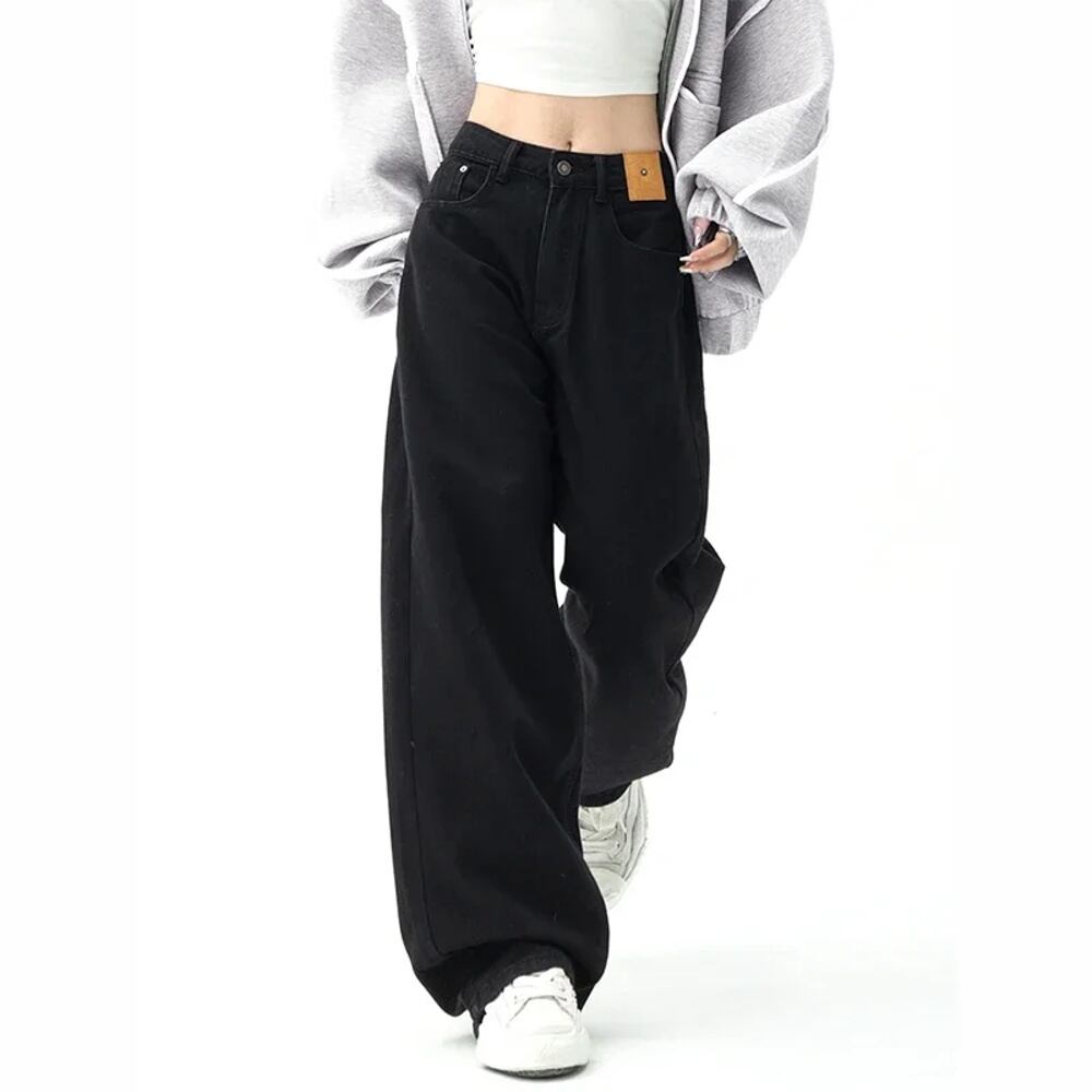 女性用ストレートデニムジーンズ,バギーパンツ,韓国ファッション,ストリートウェア,ハイウエスト,ワイドレッグ ボトム ワイドレッグ バギーパンツ T240901062730_01
