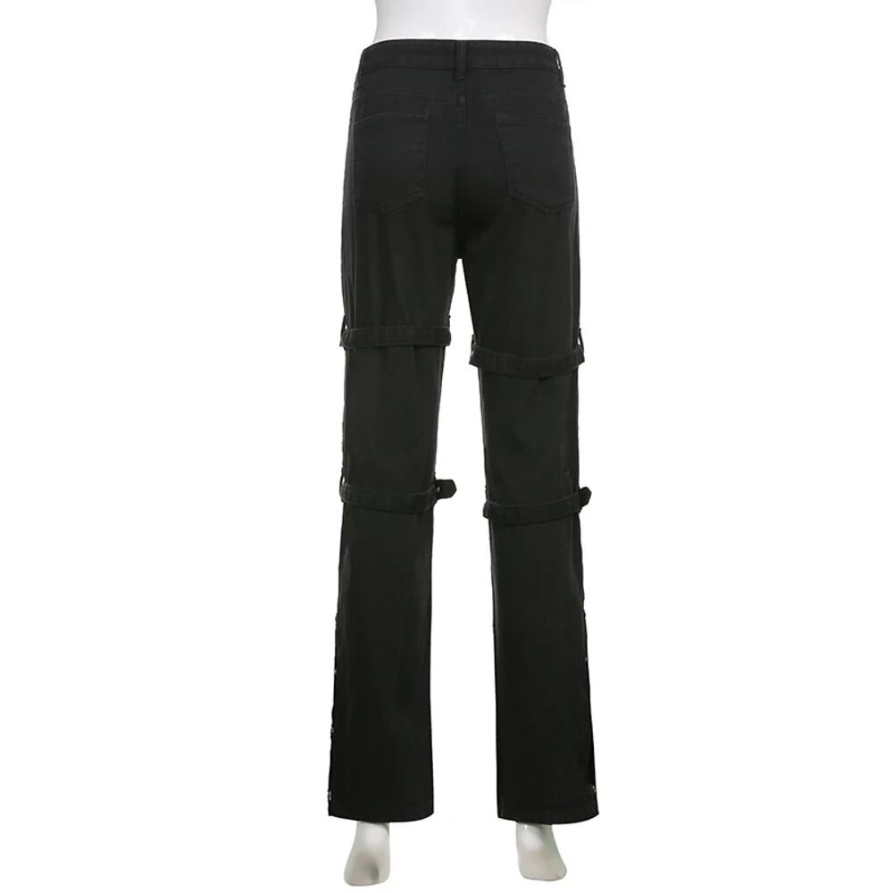 E-girl-ゴシックカーゴパンツ,ブラック,カプリ,ローウエスト,ロングパンツ,グレー,ヴィンテージ,ヒップホップ,パンク,原宿,ストリートウェア ボトム ワイドレッグ バギーパンツ T240901063140_01