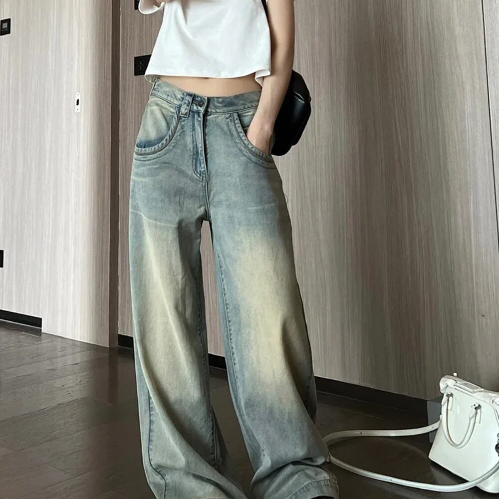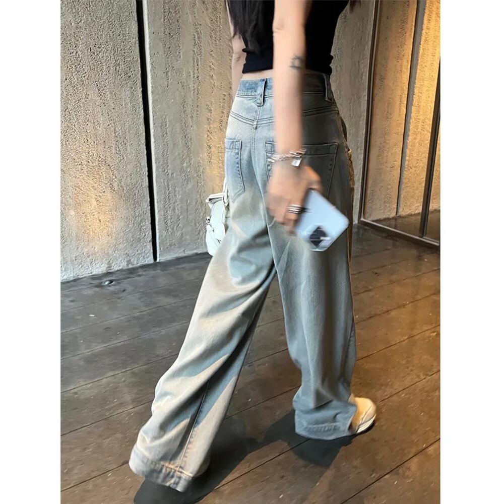 女性のためのアメリカのヴィンテージブルージーンズ、ルーズカーゴパンツ、ハイウエスト、特大のバギーワイドレッグパンツ、ファッションストリートウェアのトレンド ボトム ワイドレッグ バギーパンツ T240901063355_01