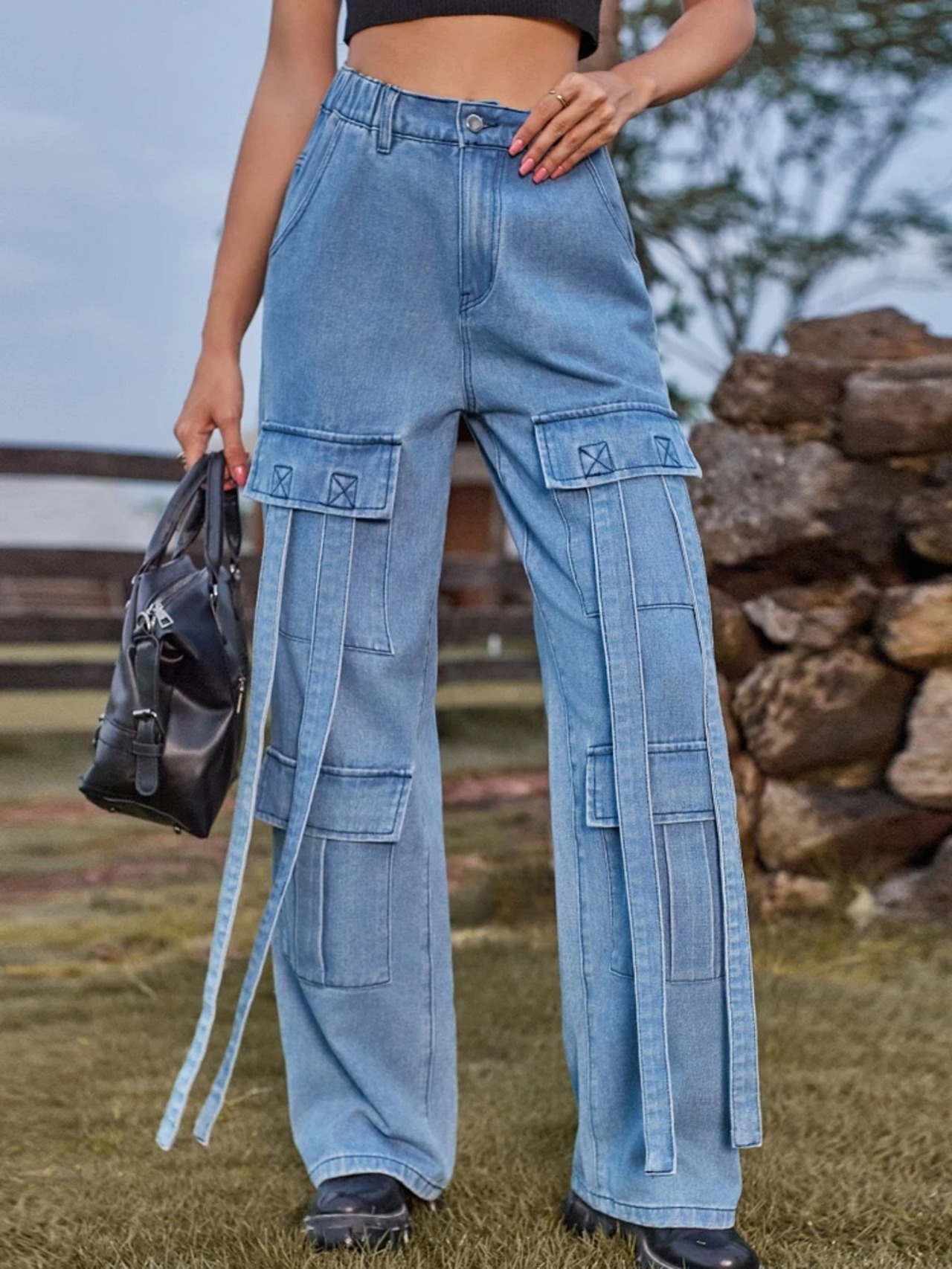 GLCMYAYA-女性用ハイウエストバギージーンズ、カーゴパンツ、ストリートウェア、ポケット付きデニムパンツ、ストレートワイドレッグパンツ、洋服 ボトム ワイドレッグ バギーパンツ T240901063416_03