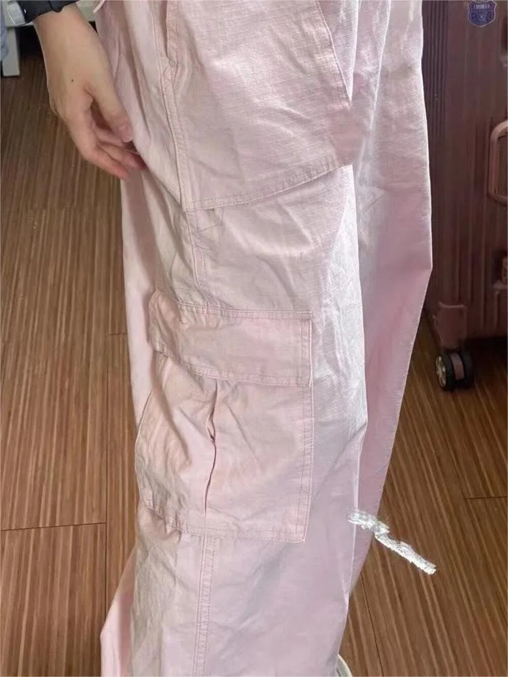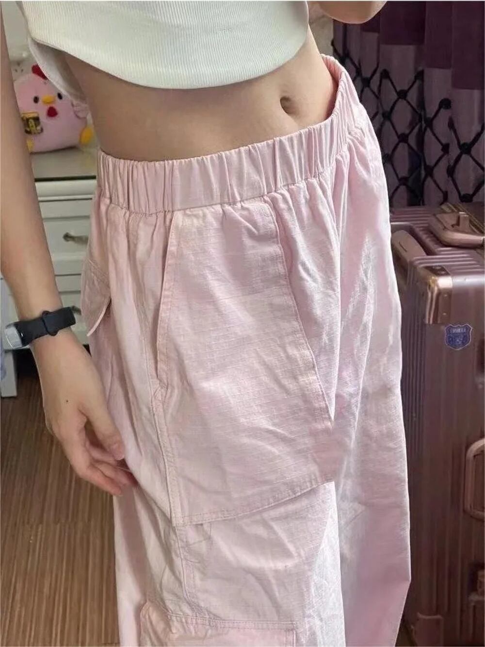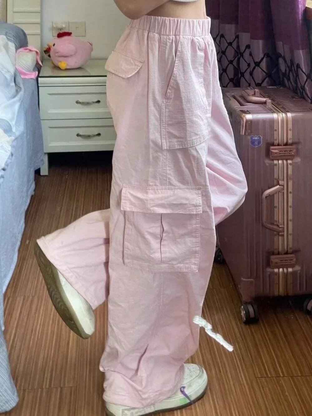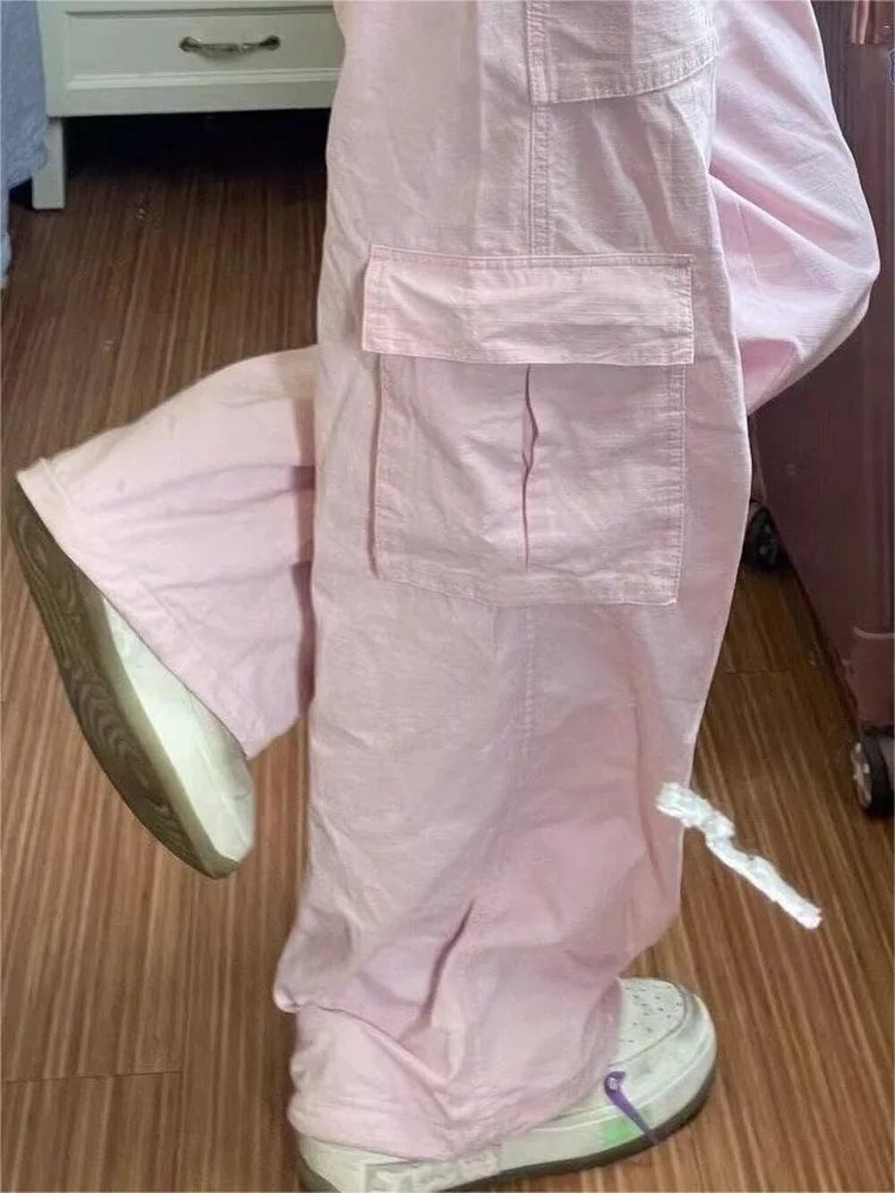 Houzhou-女性用バギーカーゴパンツ、ハイショット、特大、韓国スタイル、kpop、ヴィンテージ、ハラジュクストリートウェア、ピンク、y2k、夏 ボトム ワイドレッグ バギーパンツ T240901063551_01