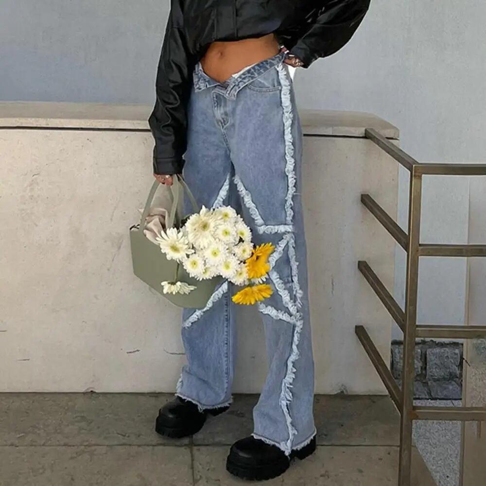 女性用ハイウエストワイドレッグジーンズ,カーゴスタイルのハイバギーパンツ,90年代のカジュアルなストリートウェア ボトム ワイドレッグ バギーパンツ T240901063616_01