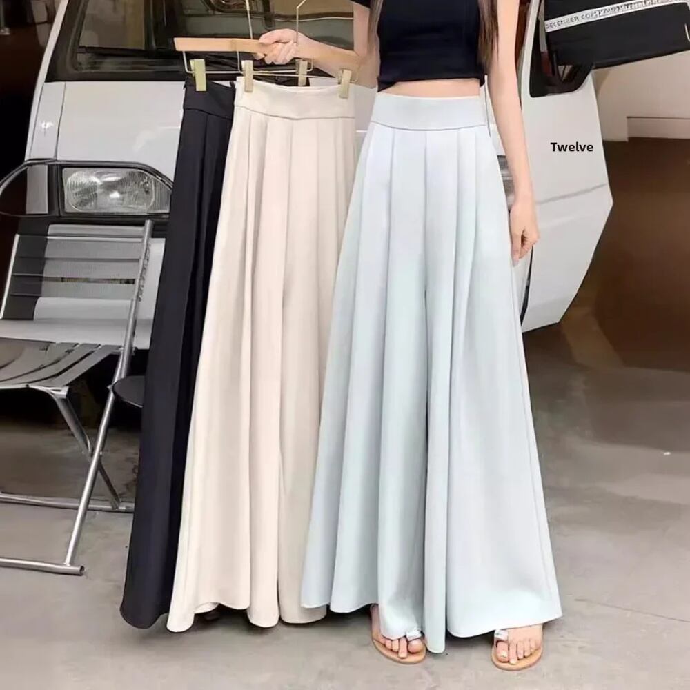 女性用ハイエンドワイドレッグパンツ,超ルーズフィット,ベルスカート,薄手のカジュアルスーツ,夏,春,秋 ボトム ワイドレッグ バギーパンツ T240901065719_02
