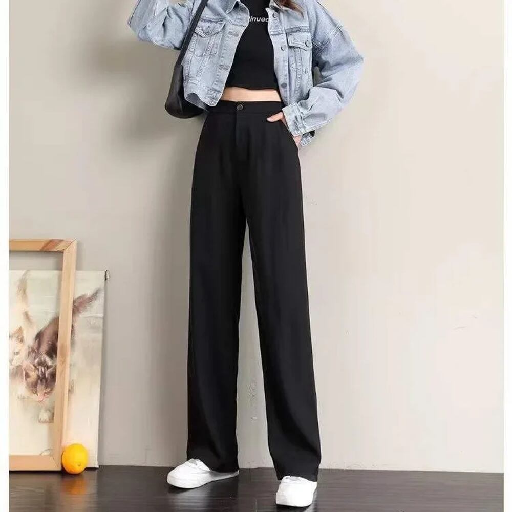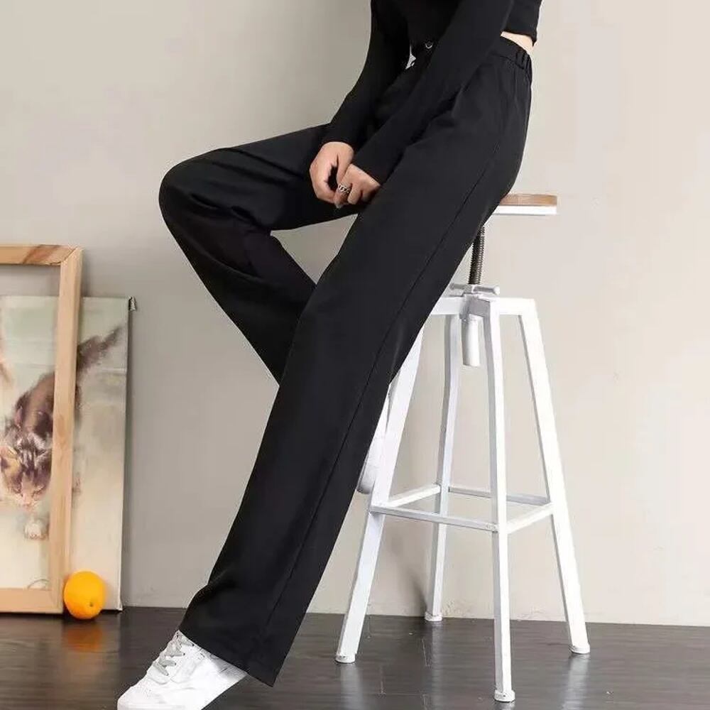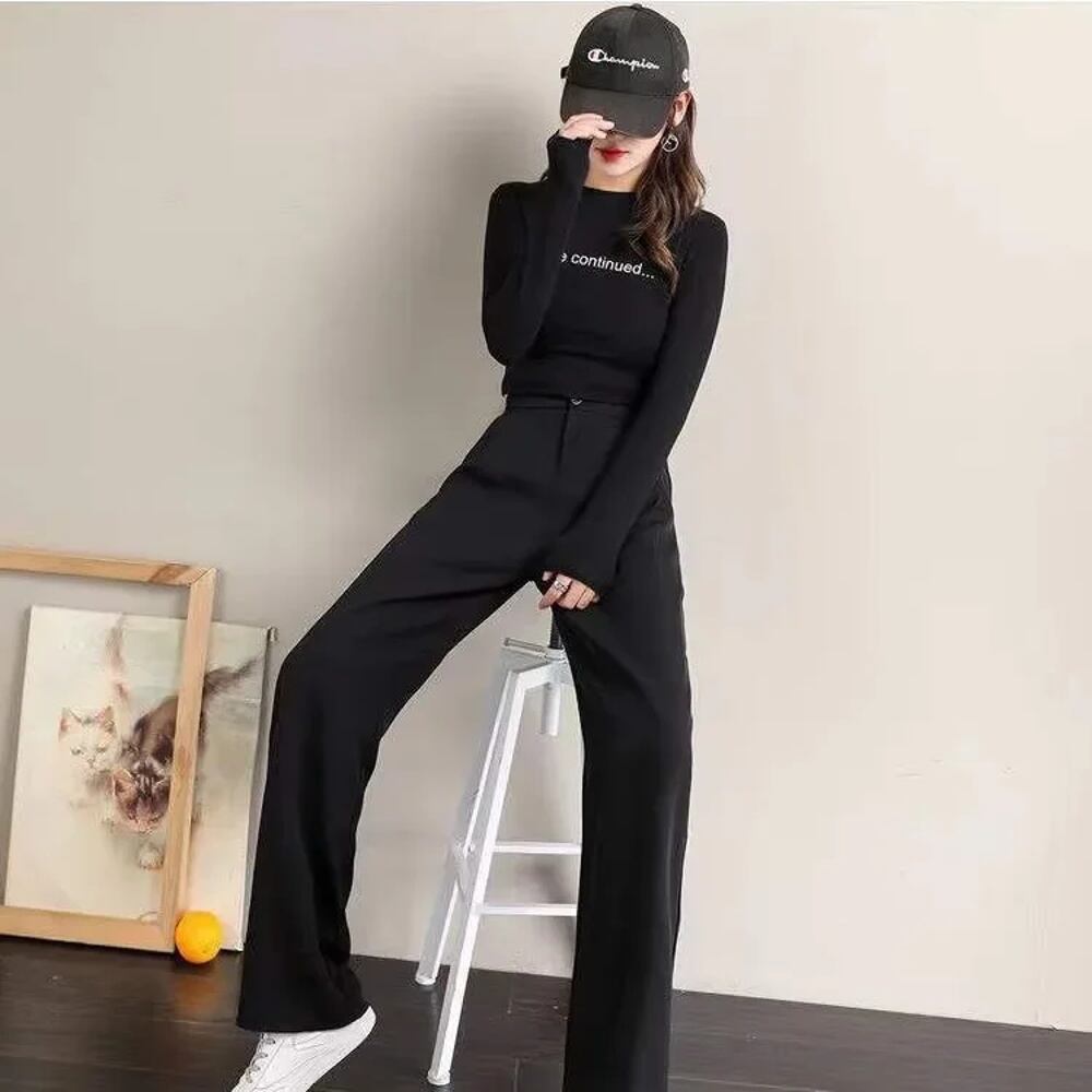 女性用ハイウエストブラックベルボトムスーツ,カジュアルパンツ,ラージサイズ,ストレートパンツ,ファッショナブル,新しい秋のスタイル ボトム ワイドレッグ バギーパンツ T240901065728_01