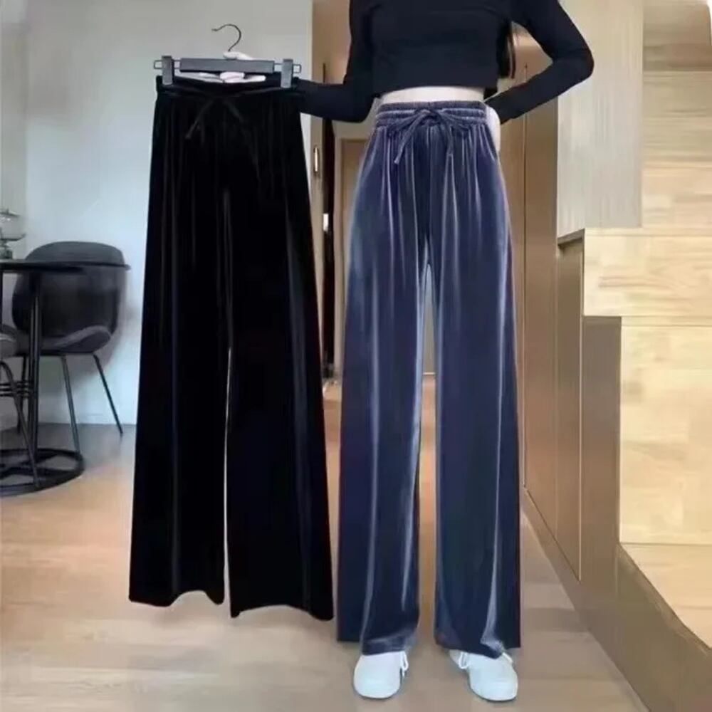女性用シルクベルベットパンツ,ハイウエスト,ストレート,ルーズフィット,カジュアル,痩身,プリーツ ボトム ワイドレッグ バギーパンツ T240901065731_01