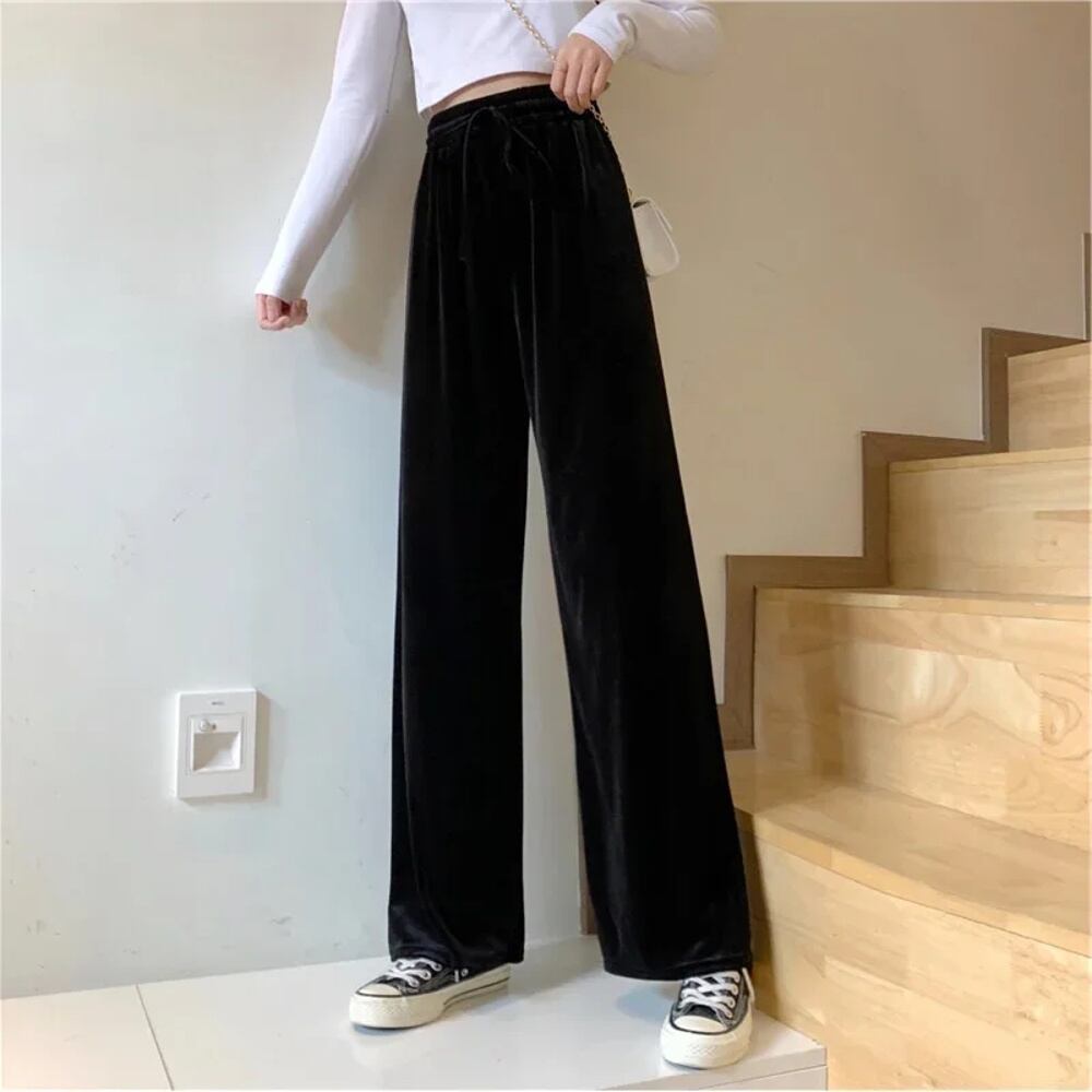 女性用シルクベルベットパンツ,ハイウエスト,ストレート,ルーズフィット,カジュアル,痩身,プリーツ ボトム ワイドレッグ バギーパンツ T240901065731_02