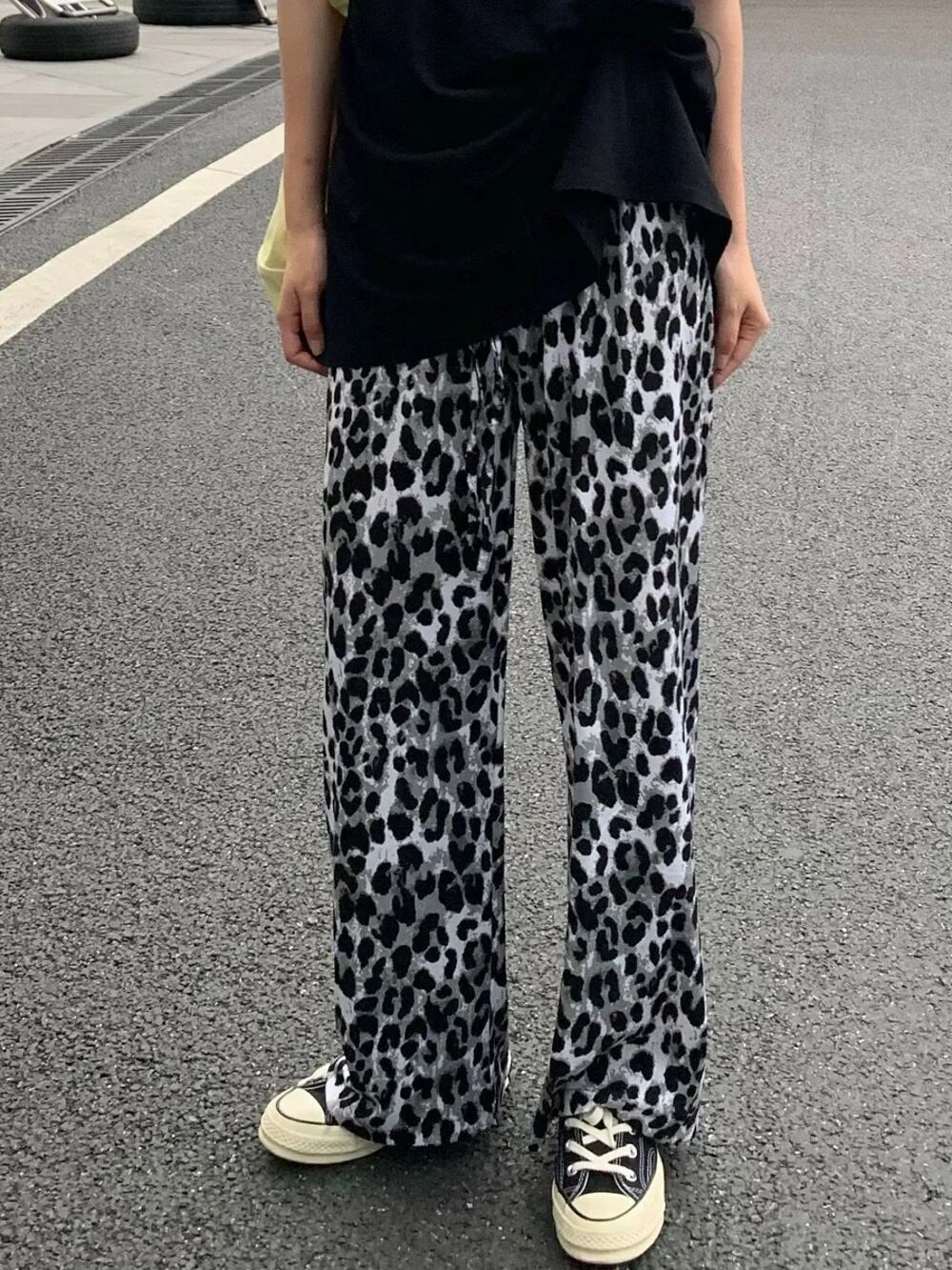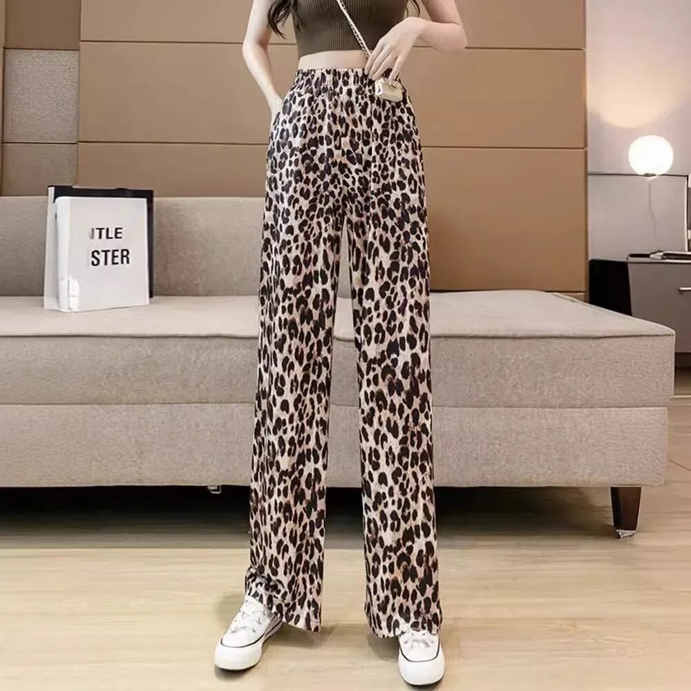 女性用ハイウエストドレープパンツ,ヒョウ柄,ベルボトム,薄いスタイル,ゆったりとしたフィット感,カジュアルウェア,新しい夏のコレクション2024 ボトム ワイドレッグ バギーパンツ T240901065742_02