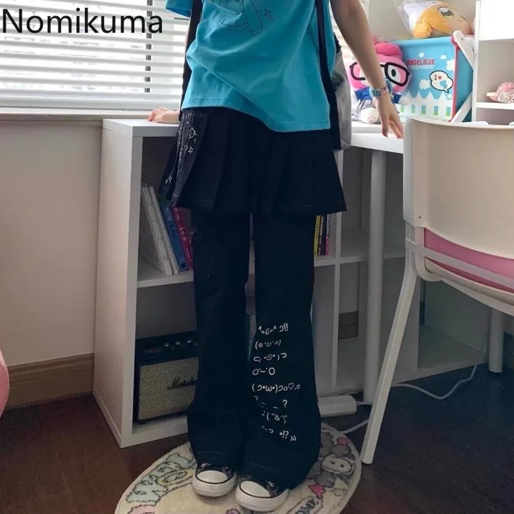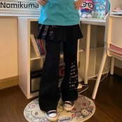 レディースハイウエストフレアパンツ,フレアフィットパンツ,カジュアル,トラックスーツ,プリント,韓国シック,ブラック,サマー,ニューコレクション2024 ボトム ワイドレッグ バギーパンツ T240901065746_01