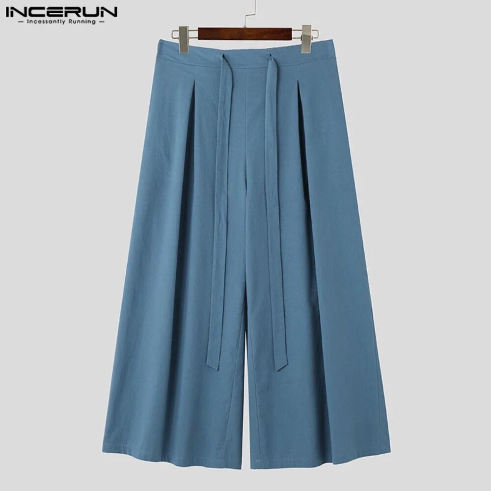 Inerun-男性用ワイドレッグパンツ,単色,コットン,カジュアル,ストリートウェア,ルーズフィット,ドローストリング,2023 ボトム ワイドレッグ バギーパンツ T240901070031_01