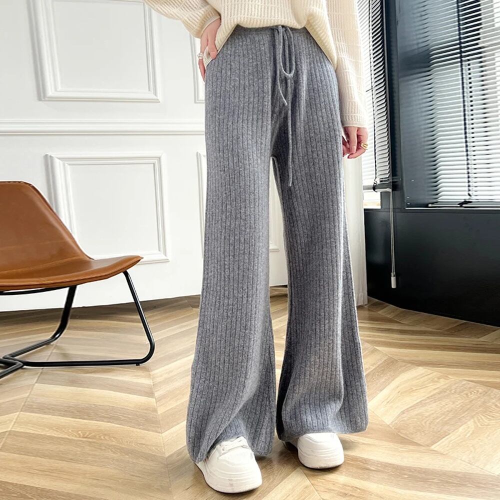 女性用ハイウエストワイドレッグパンツ,メリノウール100%,ニット,ルーズ,ウォーム,カジュアル,韓国ファッション,秋冬 ボトム ワイドレッグ バギーパンツ T240901070037_01