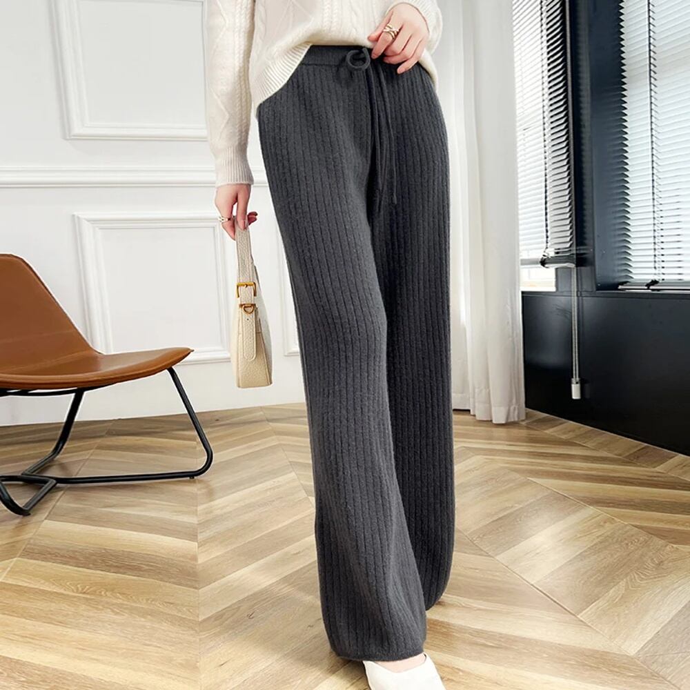 女性用ハイウエストワイドレッグパンツ,メリノウール100%,ニット,ルーズ,ウォーム,カジュアル,韓国ファッション,秋冬 ボトム ワイドレッグ バギーパンツ T240901070037_03