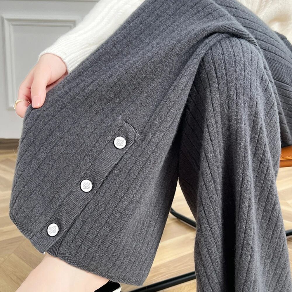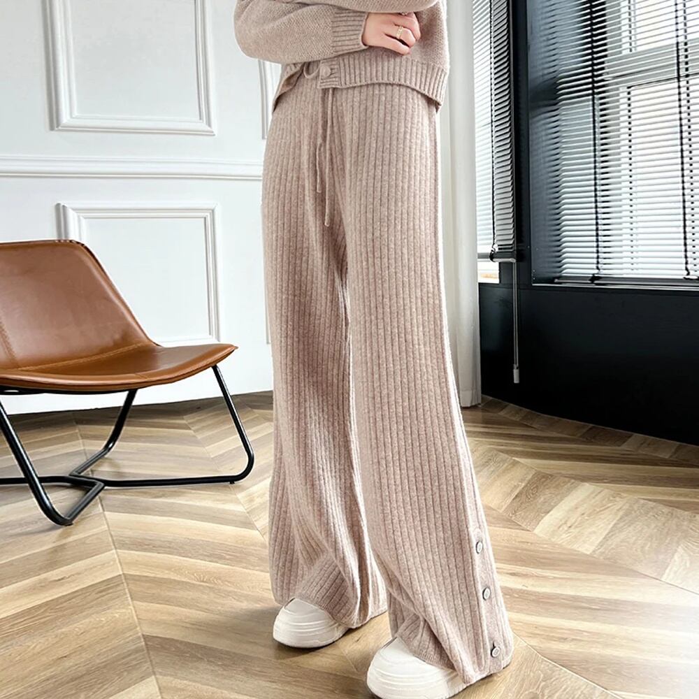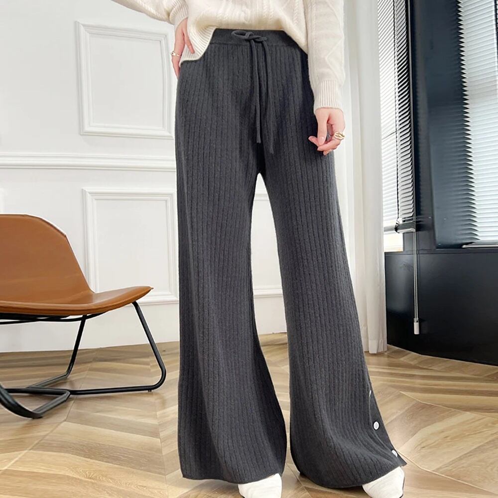 女性用ハイウエストワイドレッグパンツ,メリノウール100%,ニット,ルーズ,ウォーム,カジュアル,韓国ファッション,秋冬 ボトム ワイドレッグ バギーパンツ T240901070037_04