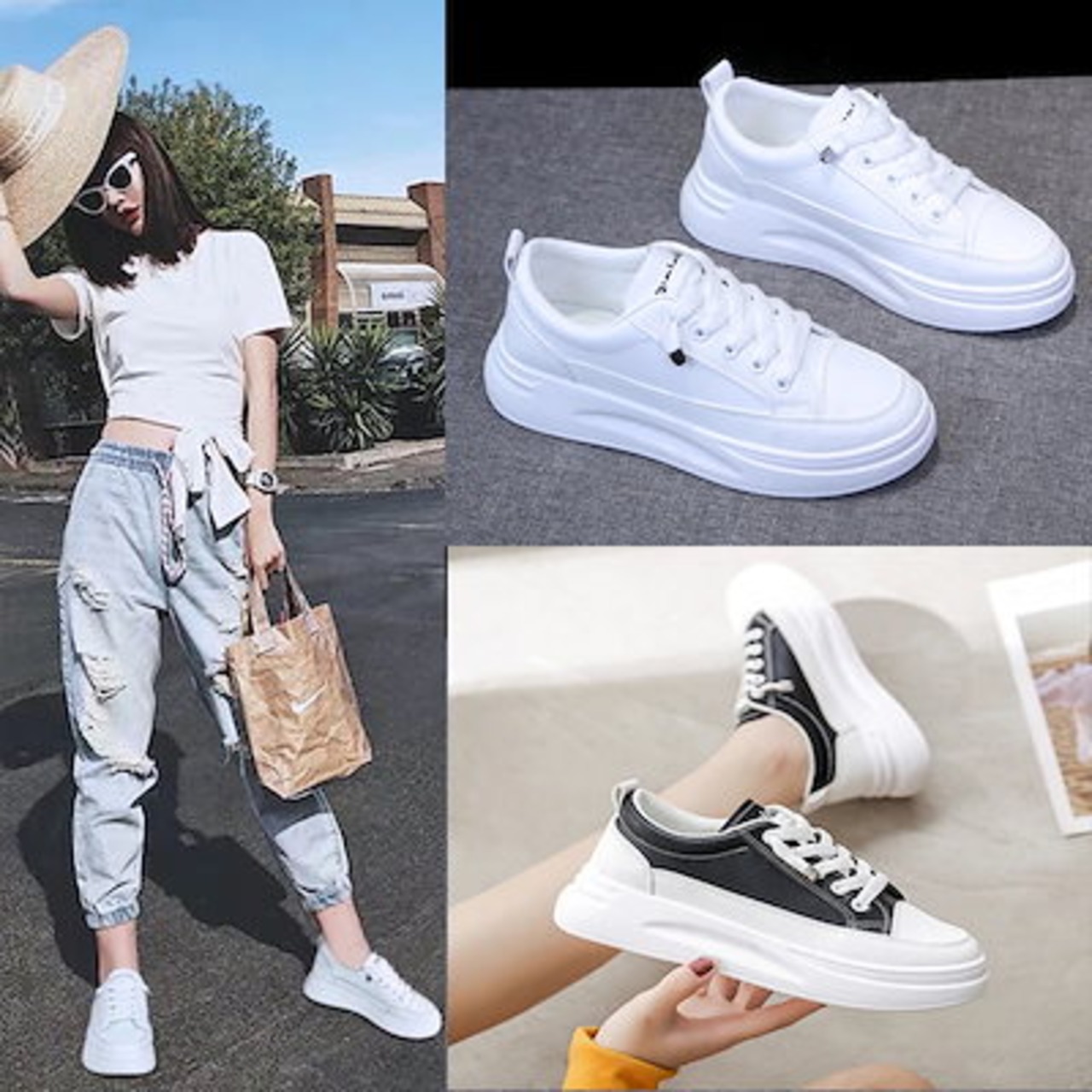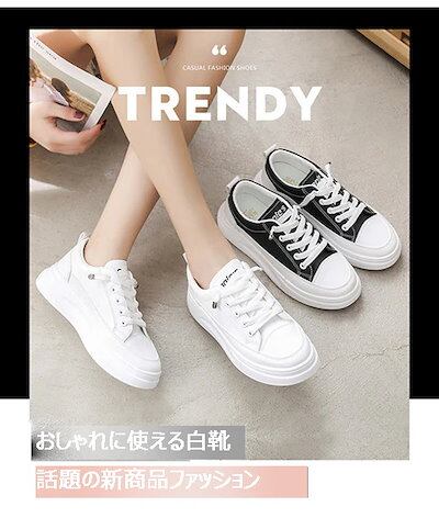S_S.IL厚底のカジュアルシューズ 今流行の靴 レディース 美脚 白いPU革レディーススニーカー 韓国靴 通学通勤 軽量白と黒のカジュアルシューズ