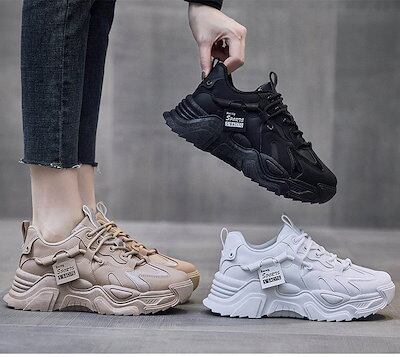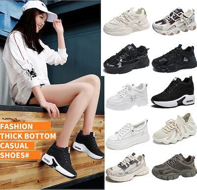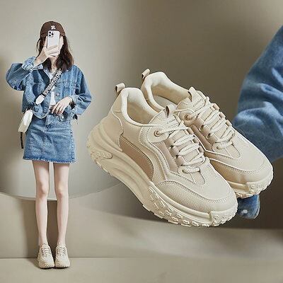 24新作入荷 スニーカー ダッドスニーカー レディース 厚底 黒 白 可愛い ローカット レースアップ 美脚